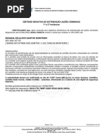judiciais, recuperações extrajudiciais, inventários, interdições, tutelas e curatelas. A certidão criminal compreende os