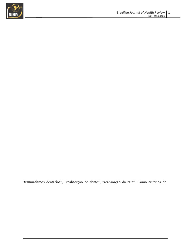 Palavras-chave: traumatismos dentários, reabsorção de dente, reabsorção da raiz.