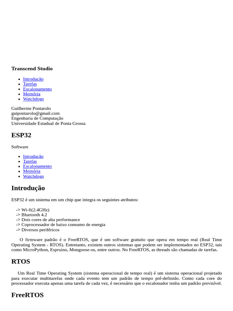 Operating System - RTOS). Entretanto, existem outros sistemas que podem ser implementados no ESP32, tais