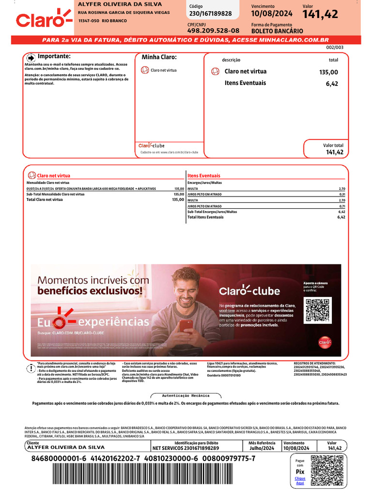 ALYFER OLIVEIRA DA SILVA NET SERVICOS 2301671898289 Julho/2024 10/08/2024 141,42