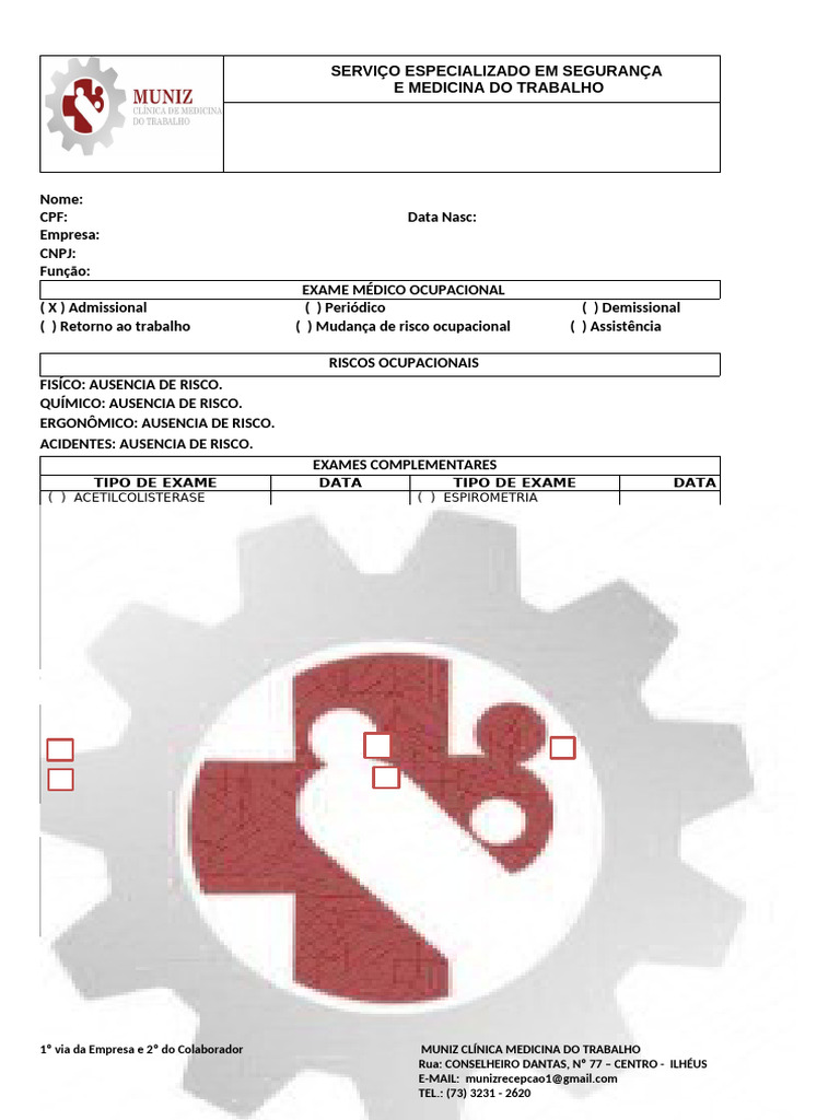 1º via da Empresa e 2º do Colaborador MUNIZ CLÍNICA MEDICINA DO TRABALHO