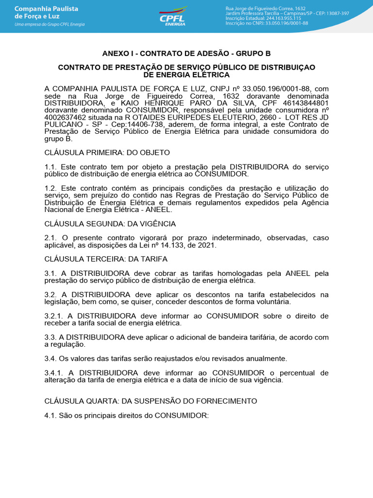 [Link] e da DISTRIBUIDORA: COMPANHIA PAULISTA DE FORÇA E