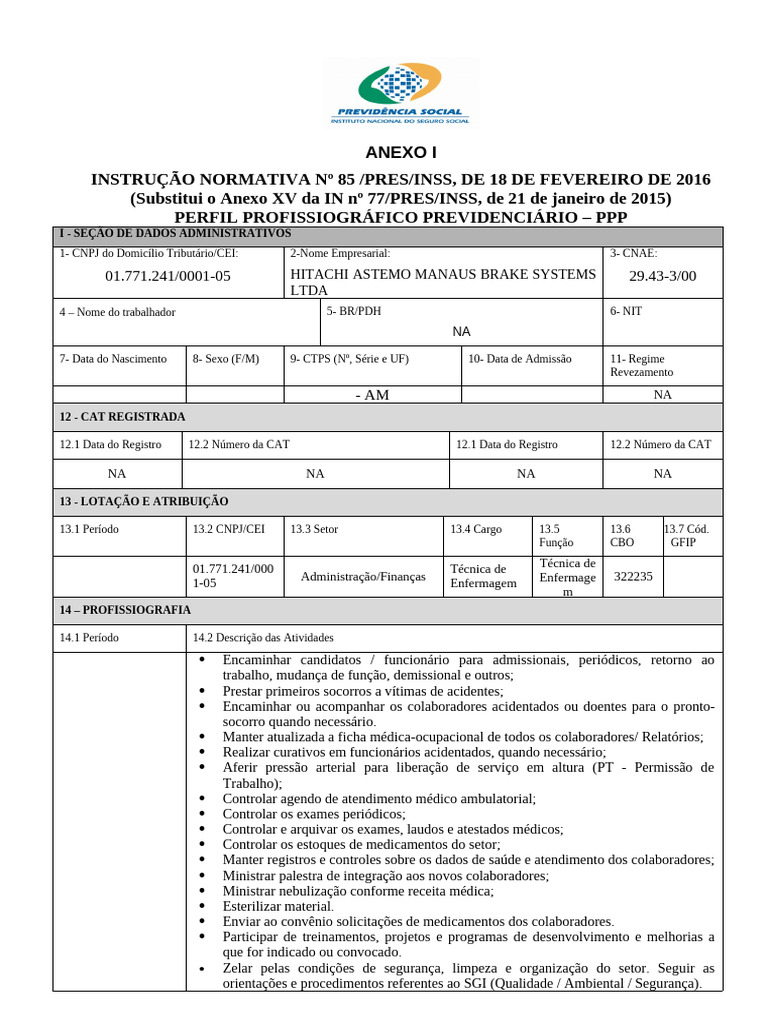 PERFIL PROFISSIOGRÁFICO PREVIDENCIÁRIO – PPP