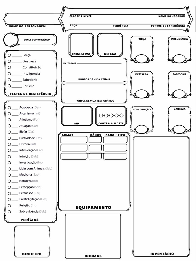 NOME DO PERSONAGEM RAÇA TENDENCIA PONTOS DE EXPERIENCIA