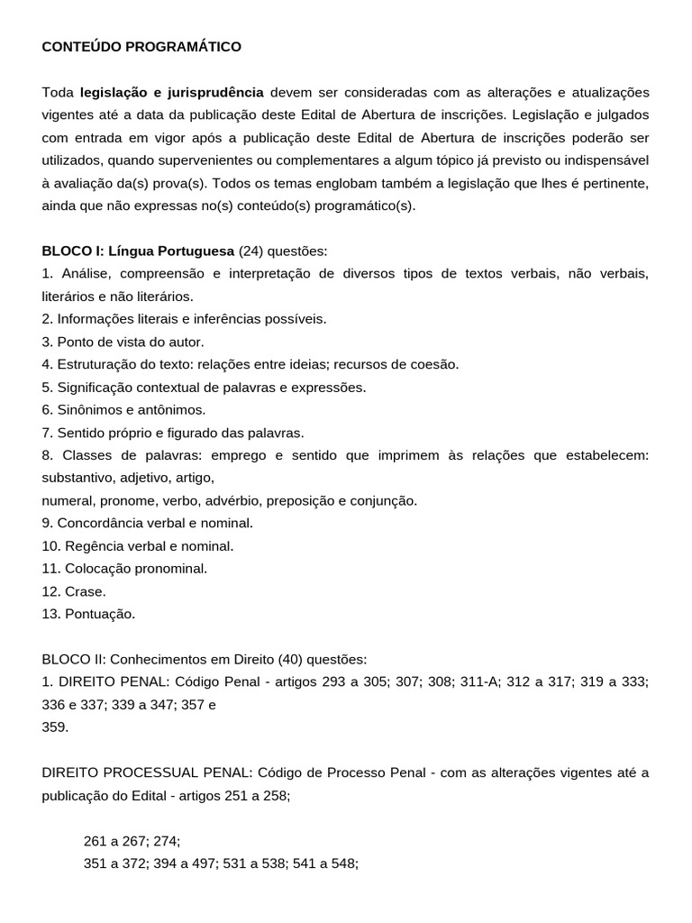 vigentes até a data da publicação deste Edital de Abertura de inscrições. Legislação e julgados