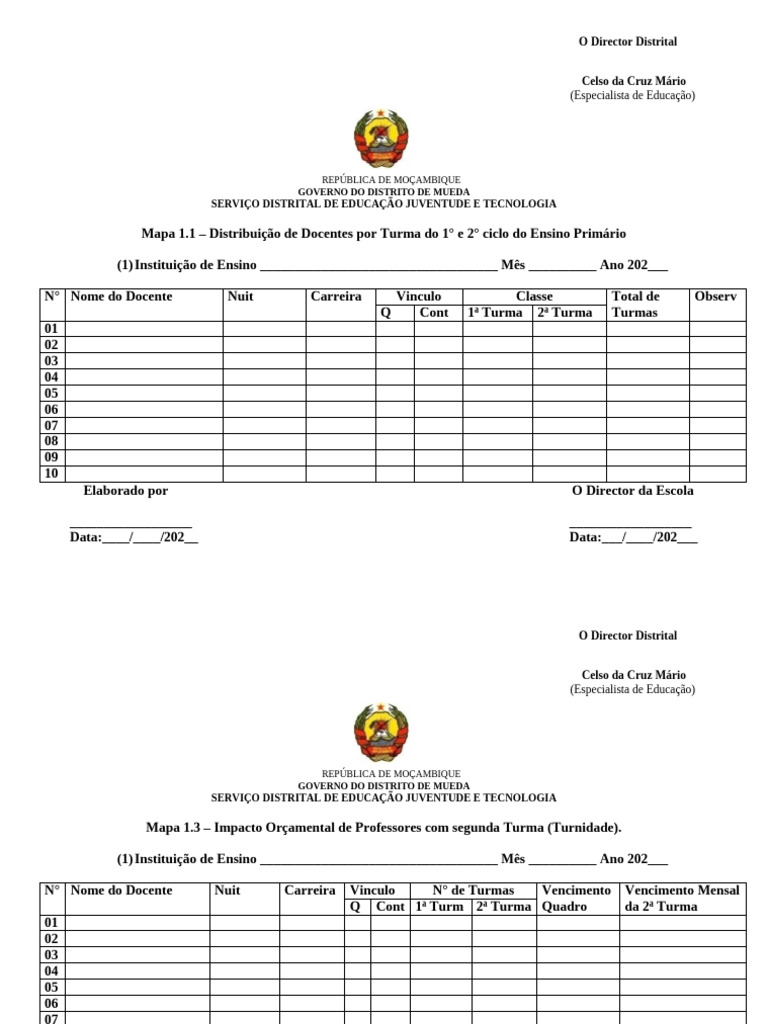 Mapa 1.1 – Distribuição de Docentes por Turma do 1° e 2° ciclo do Ensino Primário