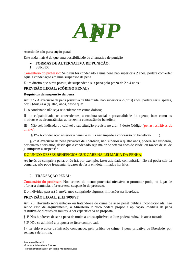 Comentário do professor: MARIA DA PENHA NÃO CABE ANPP.
