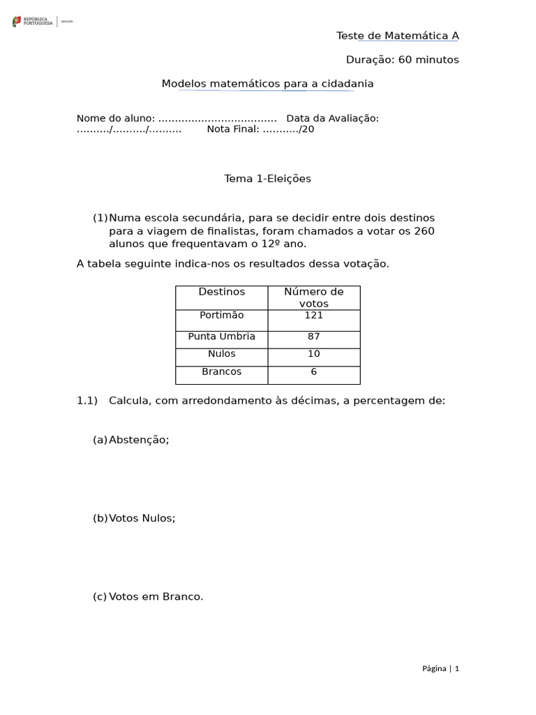 (a) Sabendo que, nas eleições autárquicas, o sistema utilizado é o