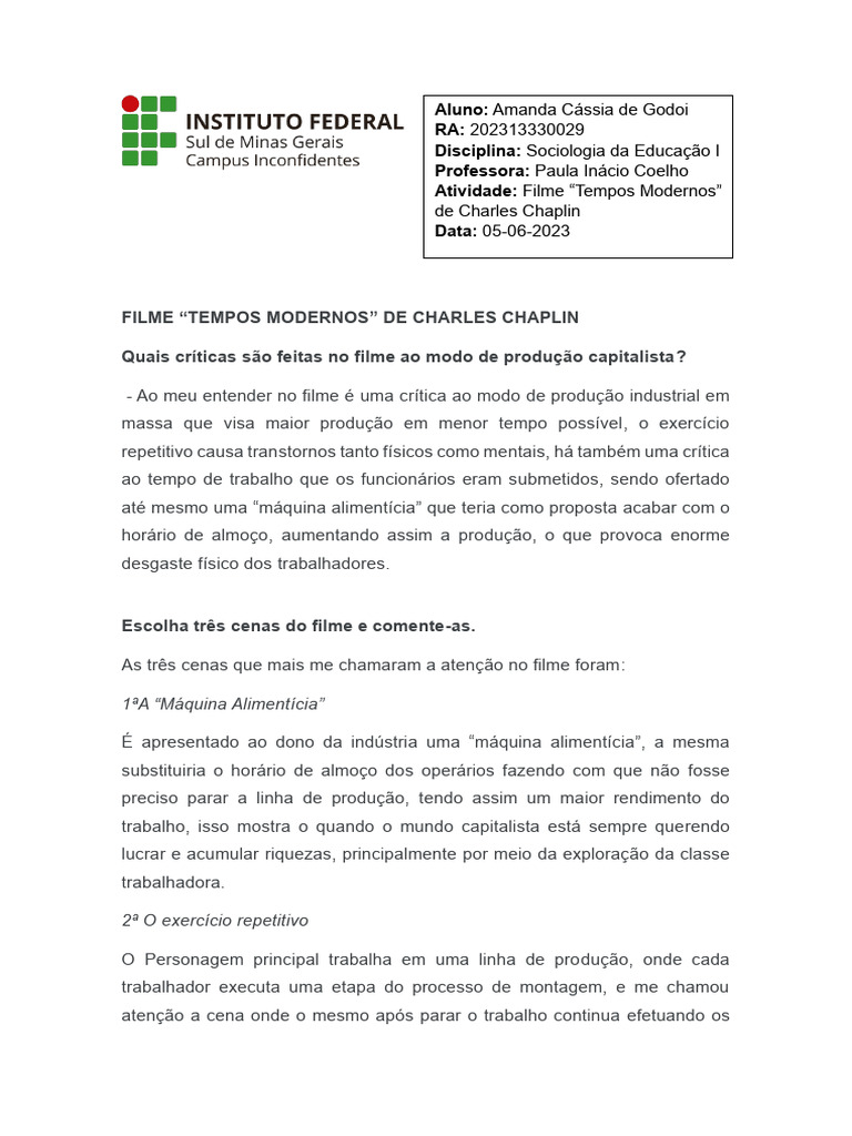 Atividade: Filme “Tempos Modernos”
