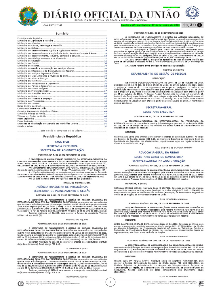 Seção 2 ISSN 1677-7050 Nº 41, quinta-feira, 27 de fevereiro de 2025