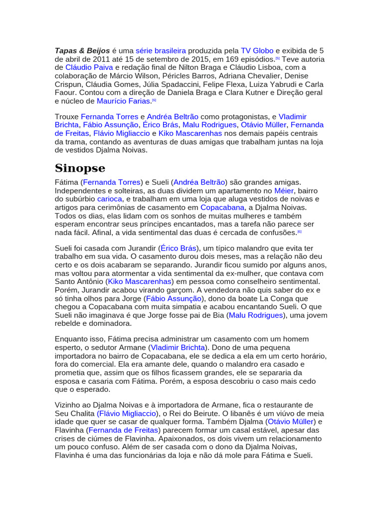 Tapas & Beijos é uma série brasileira produzida pela TV Globo e exibida de 5