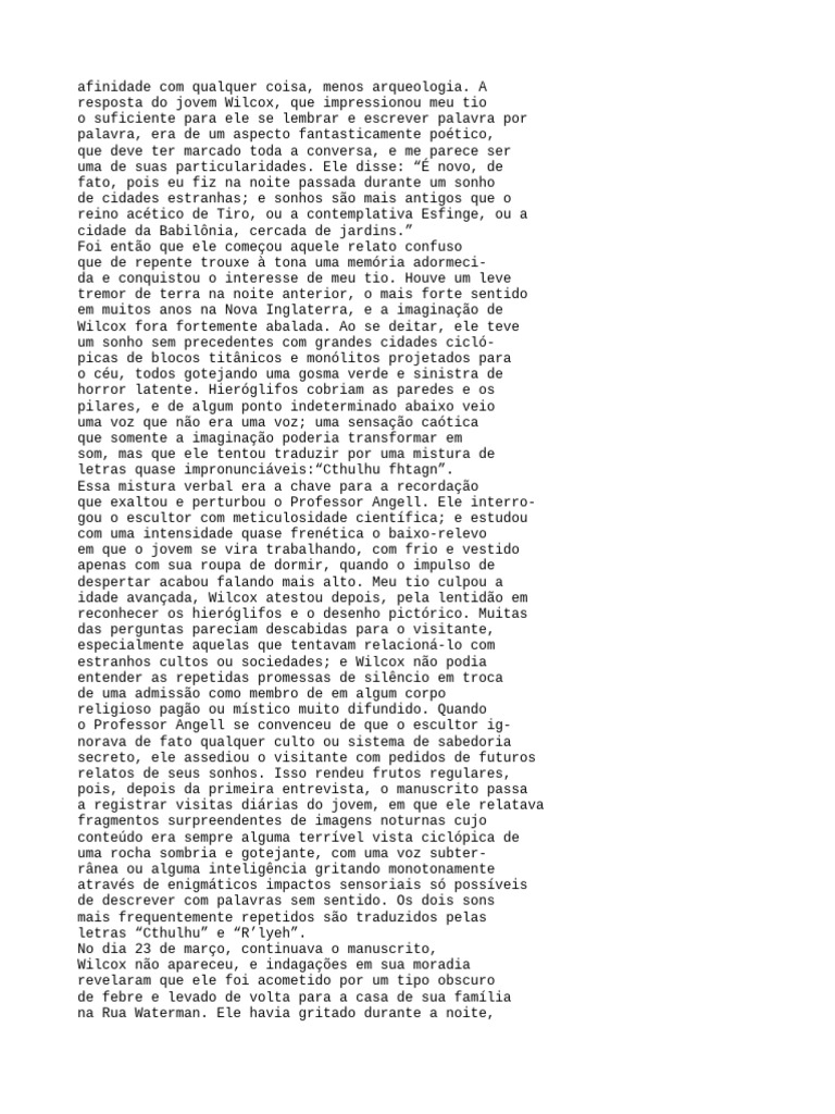 letras quase impronunciáveis:“Cthulhu fhtagn”.