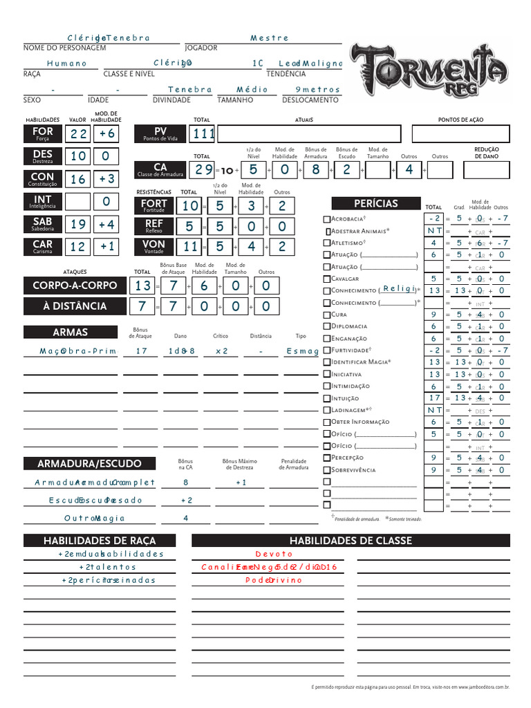Humano Clérigo 10 Nd 10 Leal e Maligna