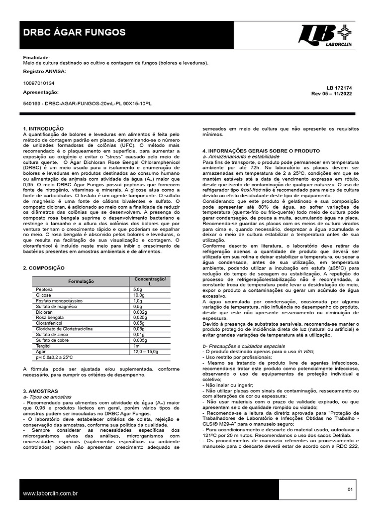 - Devido à variação nutricional, algumas cepas podem apresentar cada lote podem ser obtidos junto ao site www.laborclin.com.br. Em