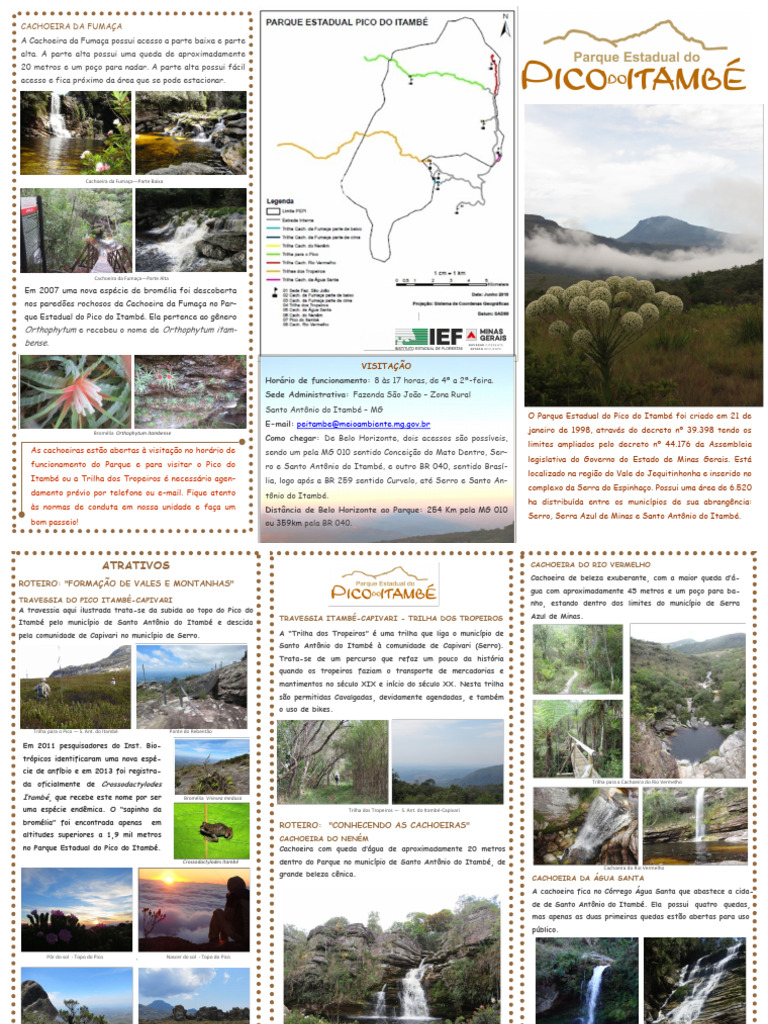 funcionamento do Parque e para visitar o Pico do ro e Santo Antônio do Itambé, e outro BR 040, sentido Brasí-