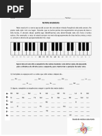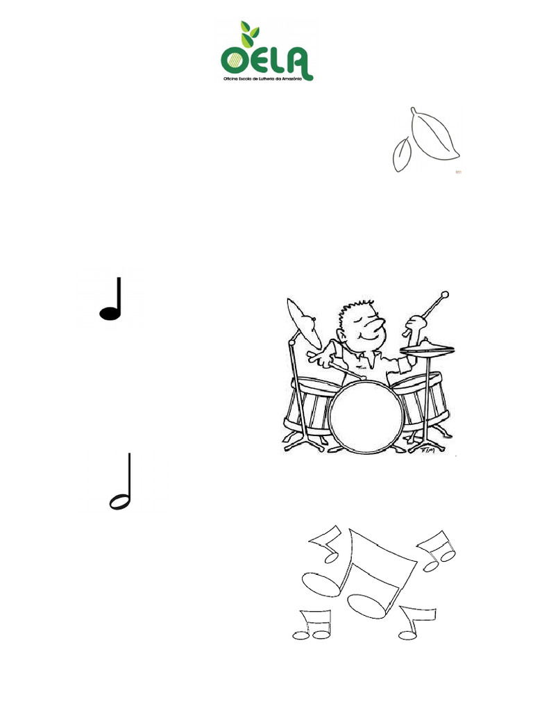 O documento é uma atividade da Oficina Escola de Lutheria da Amazônia, destinada a alunos, que envolve a identificação de valores rítmicos e a completude de escalas musicais. Inclui exercícios de marcação de tempos e um ditado musical. O aluno deve preencher seu nome e a data na parte superior.