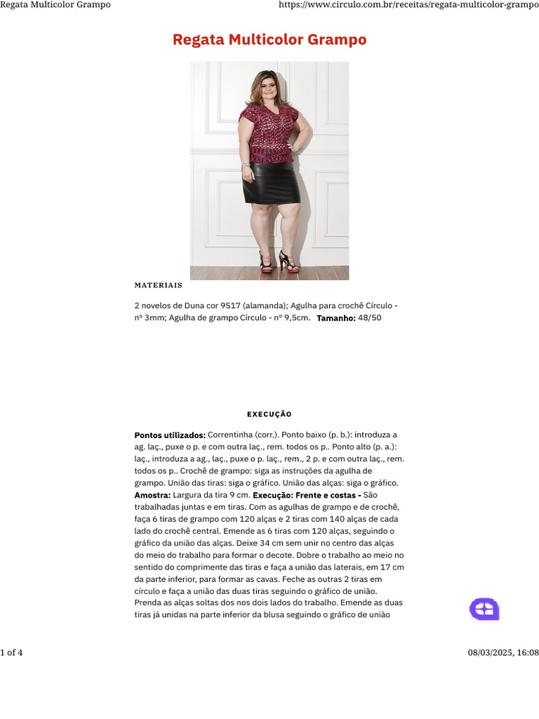 grampo. União das tiras: siga o gráfico. União das alças: siga o gráfico.