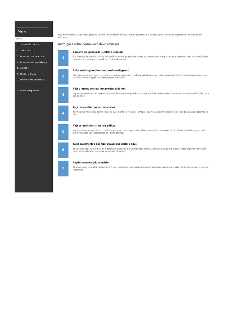 Seja bem-vindo(a). Com esta planilha você terá o controle das suas finanças pessoais e poderá tomar decisões importantes com base em