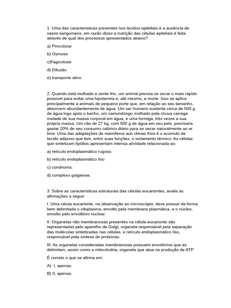 I. Uma célula eucarionte, na observação ao microscópio, deve possuir de forma