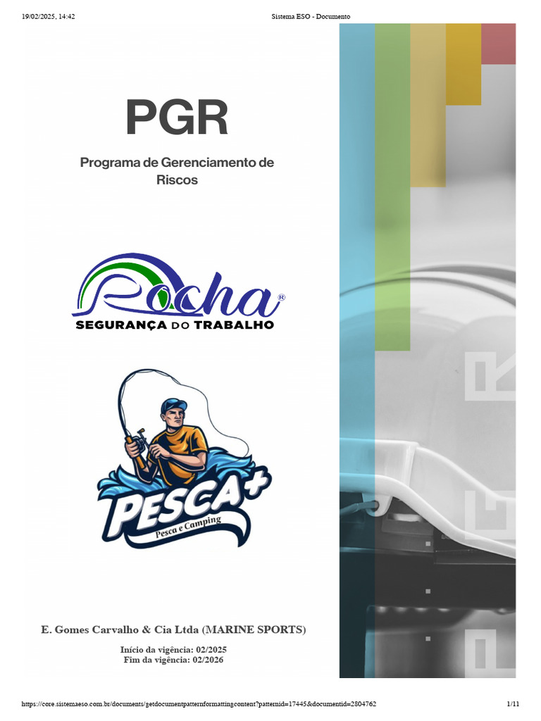 Este documento representa a implementação do PGR - Programa de Gerenciamento de Riscos, estabelecido pela NR-1 (Portaria