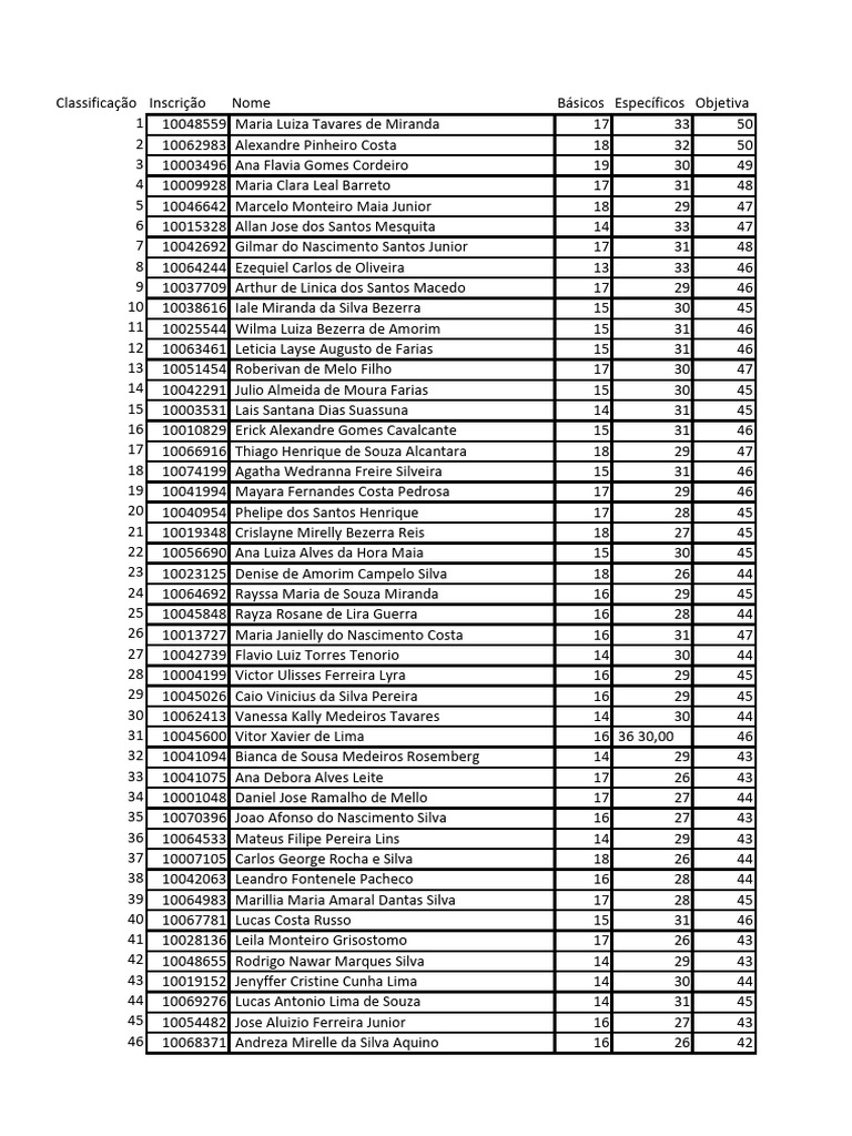 233 10023098 Maria Tereza de Brito Medeiros 17 25 42