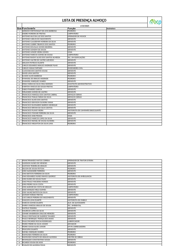 Qua Funcionário Função Assinatura