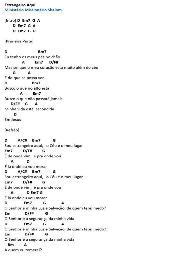 Sou estrangeiro aqui, o Céu é o meu lugar