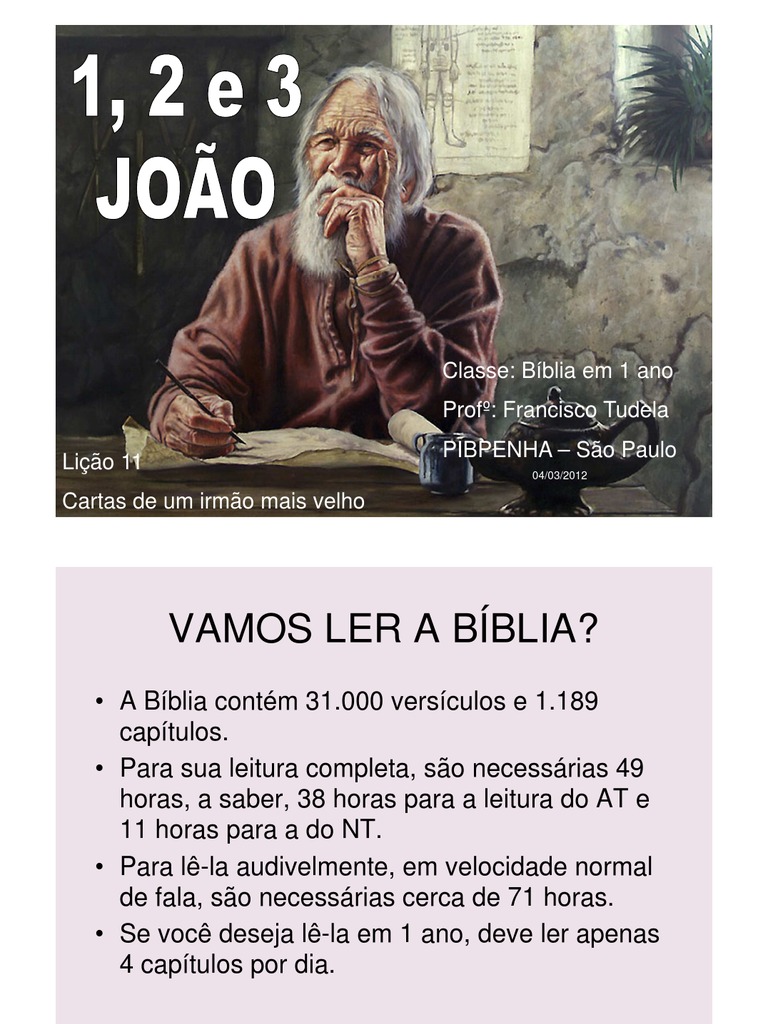 Classe: Bblia em 1 ano Prof: Francisco Tudela Lio 11 Cartas de um irmo mais velho PIBPENHA So Paulo