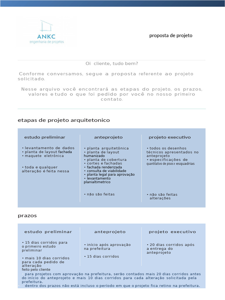 do serviço + tres parcela s, uma ao fim do projeto executi vo, uma na entrega
