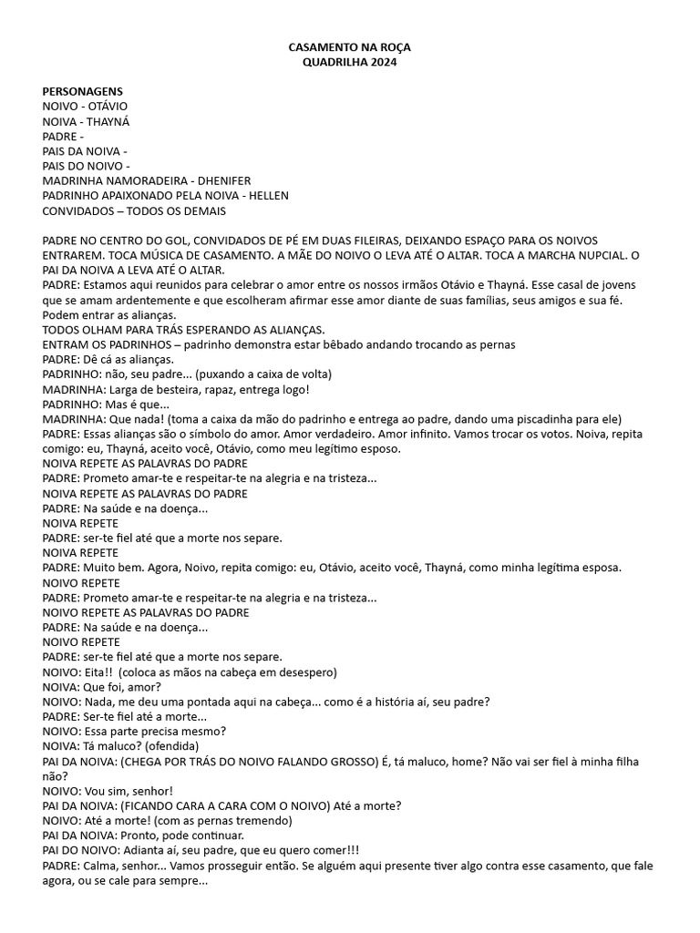 PADRE: Muito bem. Agora, Noivo, repita comigo: eu, Otávio, aceito você, Thayná, como minha legítima esposa.