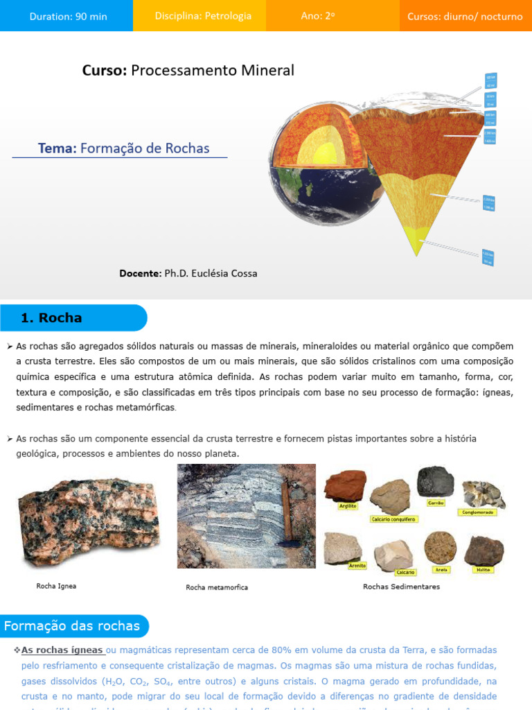 Duration: 90 min Disciplina: Petrologia Ano: 2o Cursos: diurno/ nocturno