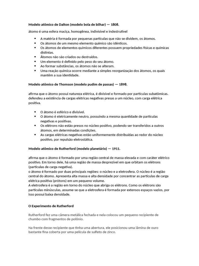 Modelo atômico de Rutherford (modelo planetário) — 1911.