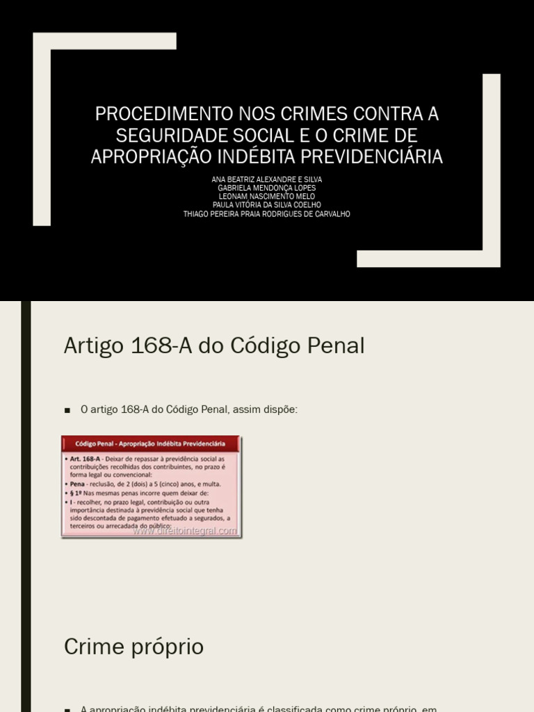 Seguridade Social. São eles: Apropriação Indébita Previdenciária, Sonegação