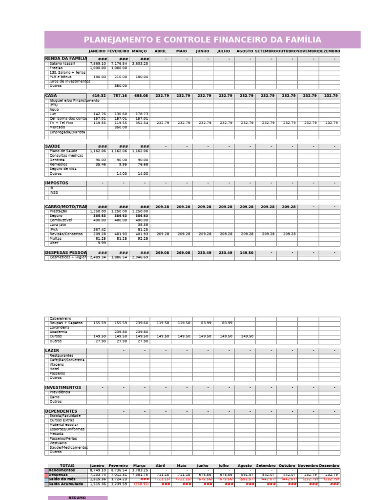 PLANEJAMENTO E CONTROLE FINANCEIRO DA FAMÍLIA