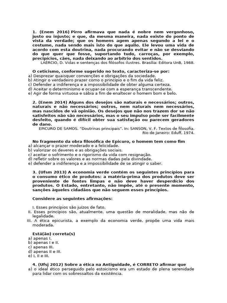 4. a) o ideal ético perseguido pelo estoicismo era um estado de plena