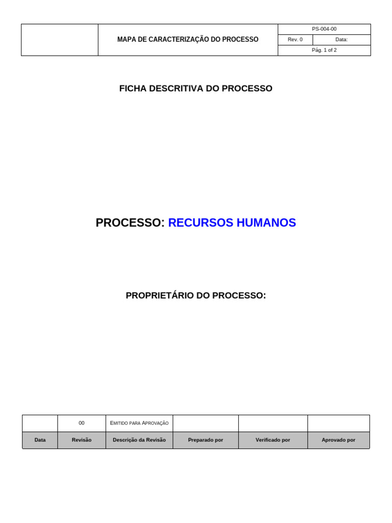 MAPA DE CARACTERIZAÇÃO DO PROCESSO Rev. 0 Data: