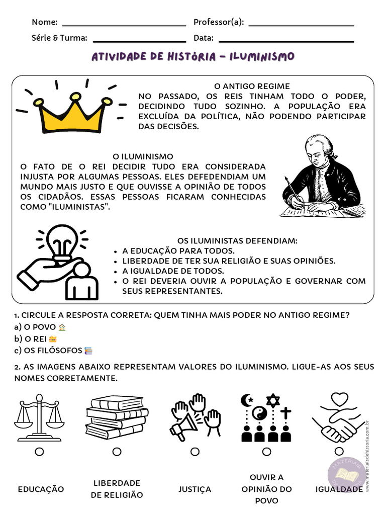 2. AS IMAGENS ABAIXO REPRESENTAM VALORES DO ILUMINISMO. LIGUE-AS AOS SEUS