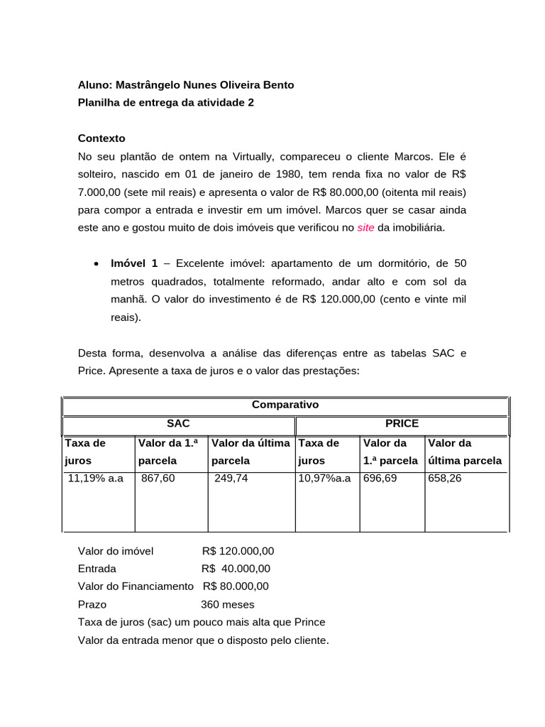 Taxa de juros (sac) um pouca coisa mais alta que Prince
