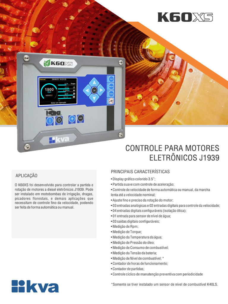 O K60XS foi desenvolvido para controlar a partida e • Partida suave com controle de aceleração;