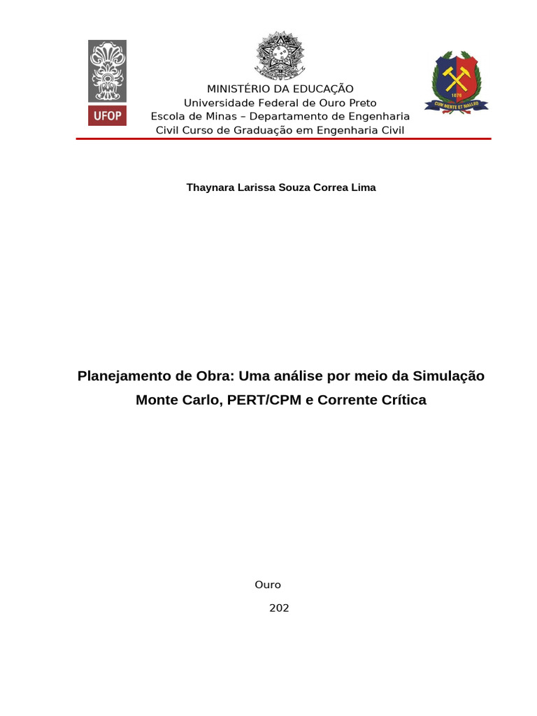 work seeks to analyze, by means of PERT/CPM, Critical Chain, and Monte