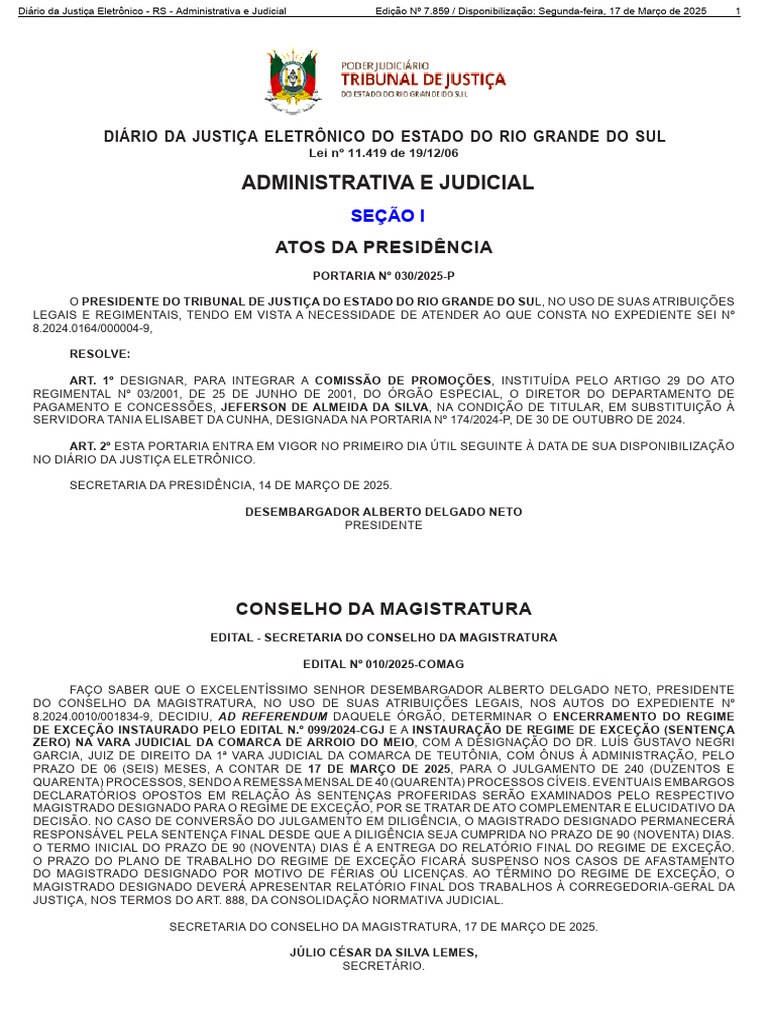 Diário da Justiça Eletrônico - RS - Administrativa e Judicial Edição Nº 7.859 / Disponibilização: Segunda-feira, 17 de Março de 2025 30