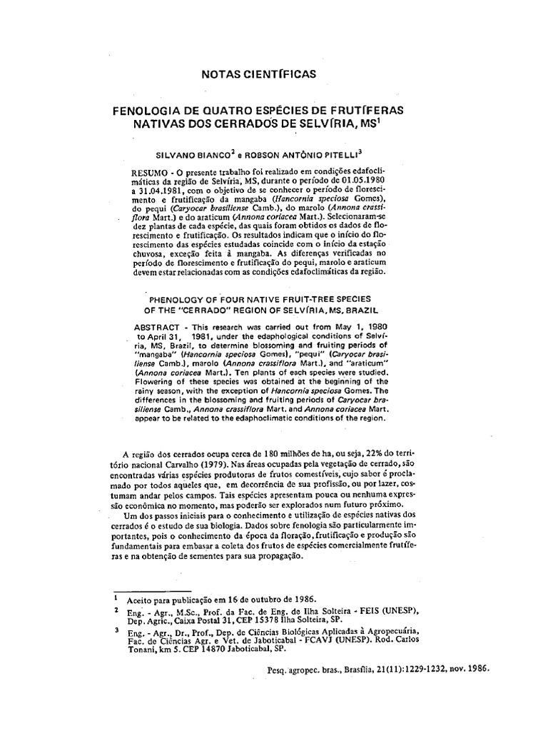 do pequi (Caryocar brasiliense Camb.), do marolo (Annona crassi-