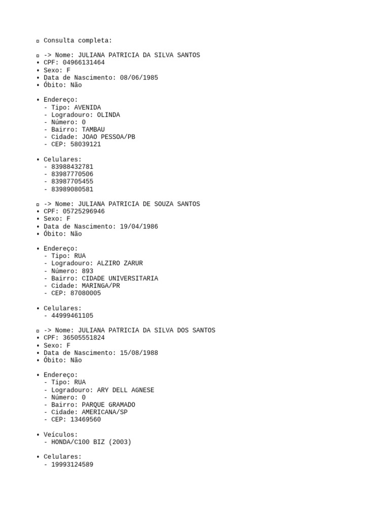 👤 -> Nome: PATRICIA JULIANA DOS SANTOS