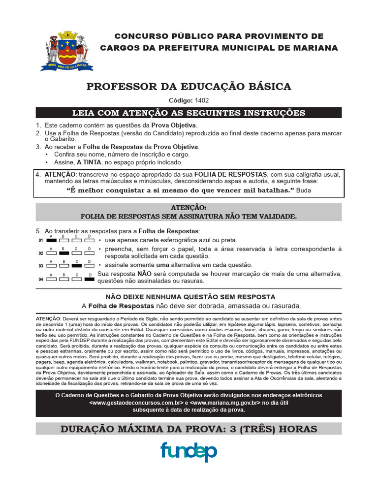 Havendo algum problema, informe imediatamente ao aplicador de provas para que ele