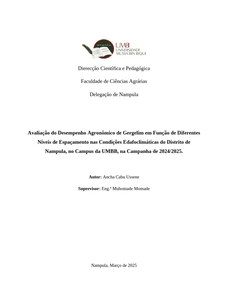 cultivo de gergelim nas condições edafoclimáticas locais, contribuindo para o desenvolvimento