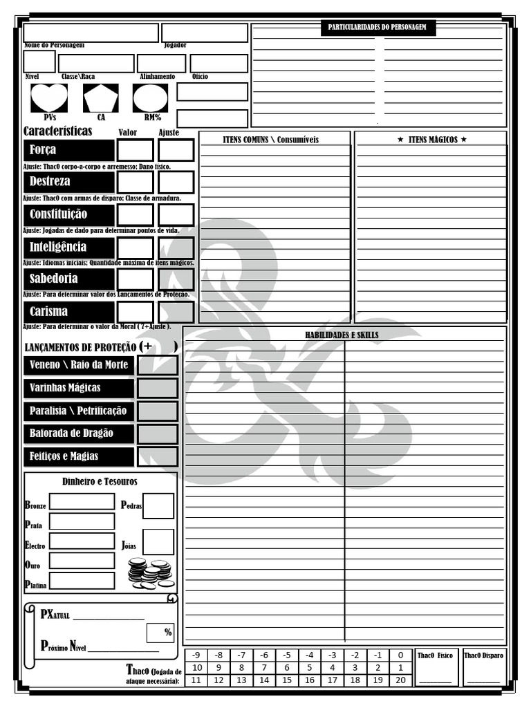 Nível Classe\Raça Alinhamento Ofício