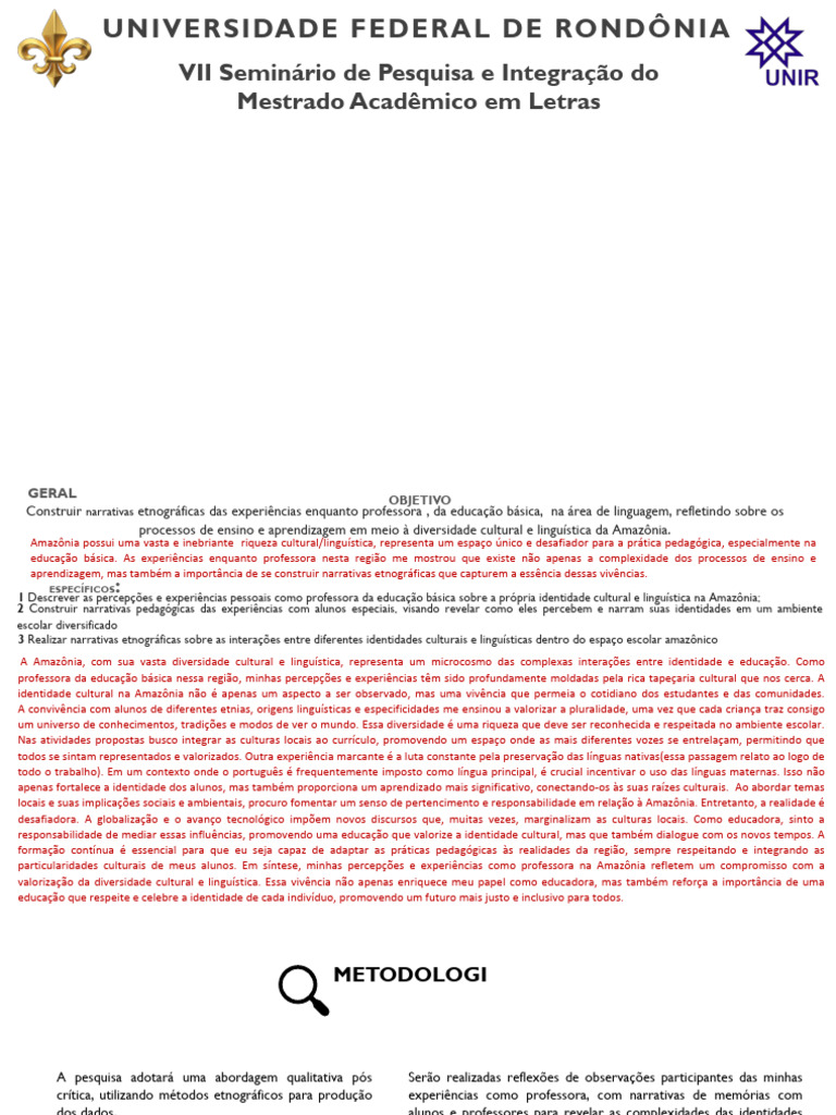 3 Realizar narrativas etnográficas sobre as interações entre diferentes identidades culturais e linguísticas dentro do espaço escolar amazônico