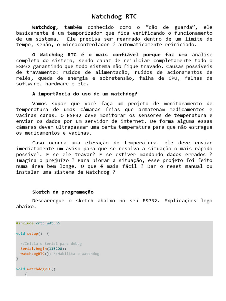 processamento do ESP32. Apenas vamos incluir as funções do Watchdog.