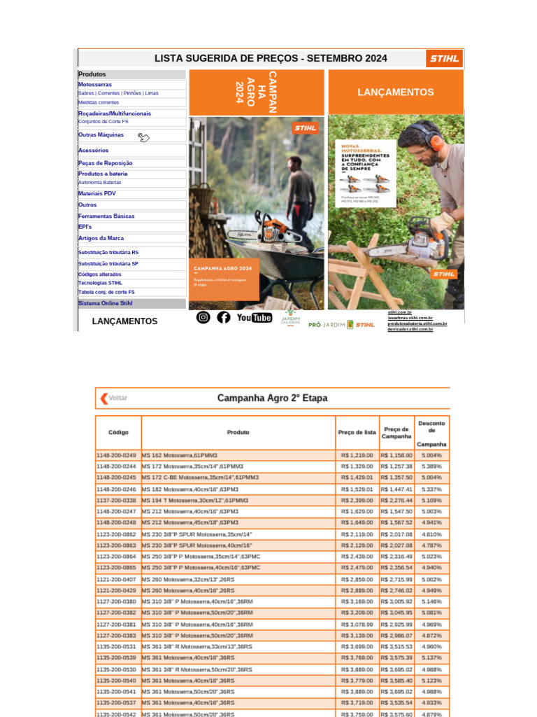 Voltar CONVENIÊNCIA LISTA DE PREÇOS STIHL