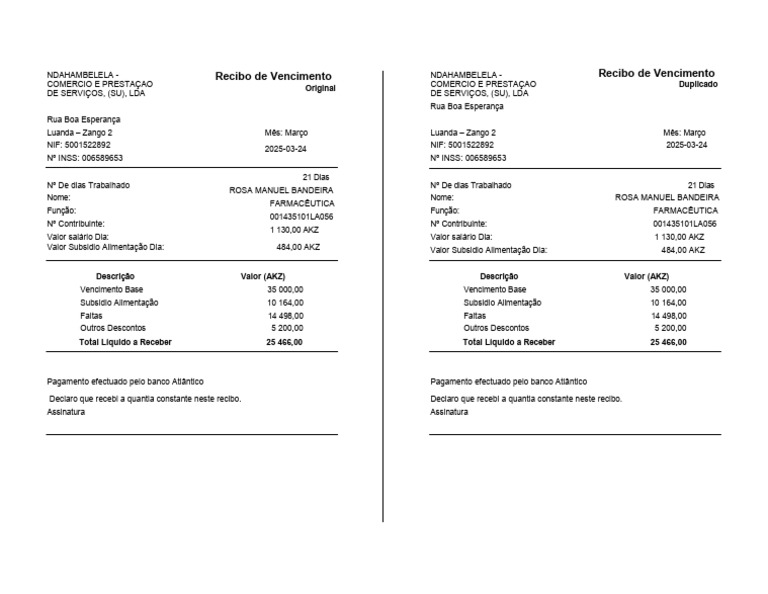 NDAHAMBELELA - Recibo de Vencimento NDAHAMBELELA - Recibo de Vencimento